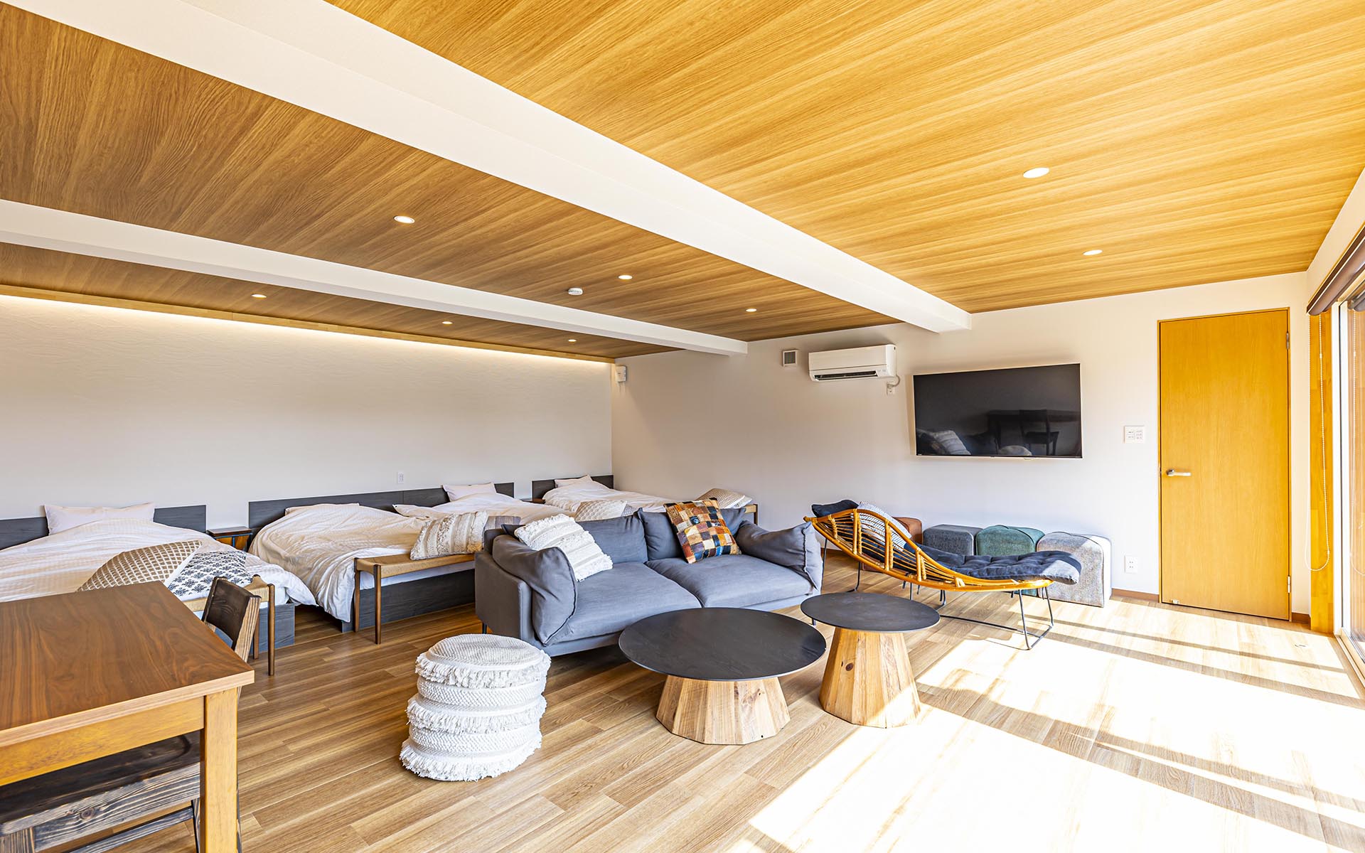 「標準型」設有56㎡寬敞空間、「豪華型」達70㎡超大空間,另有「寵物標準型」及「寵物豪華型」兩款,均配備專用寵物活動空間。全棟均設有冷暖氣設備。 客房設施完善,全年皆可舒適度過。