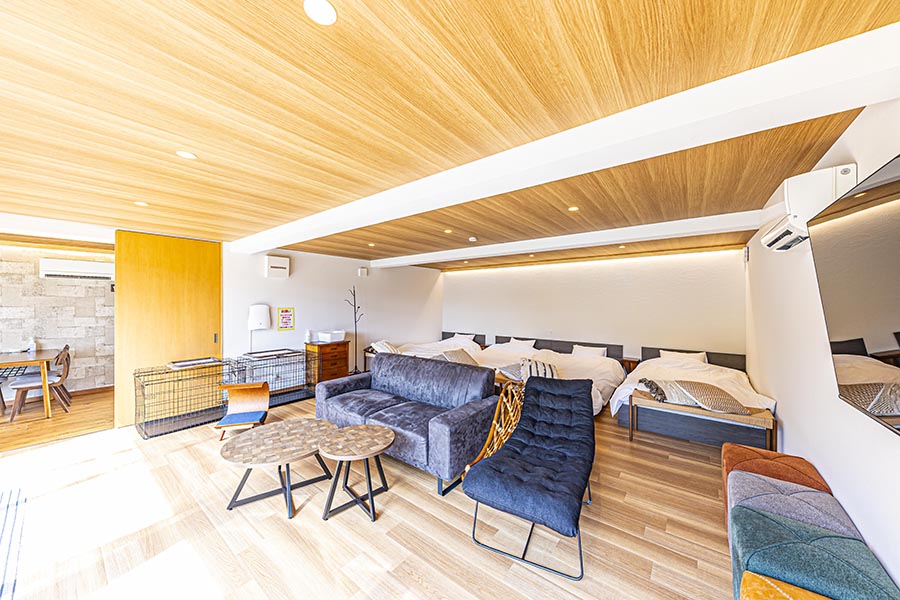 附有寬敞私人寵物活動空間的小屋,讓愛犬也能盡情奔跑。 無論犬種、體型或數量皆可入住,深受愛犬人士喜愛。